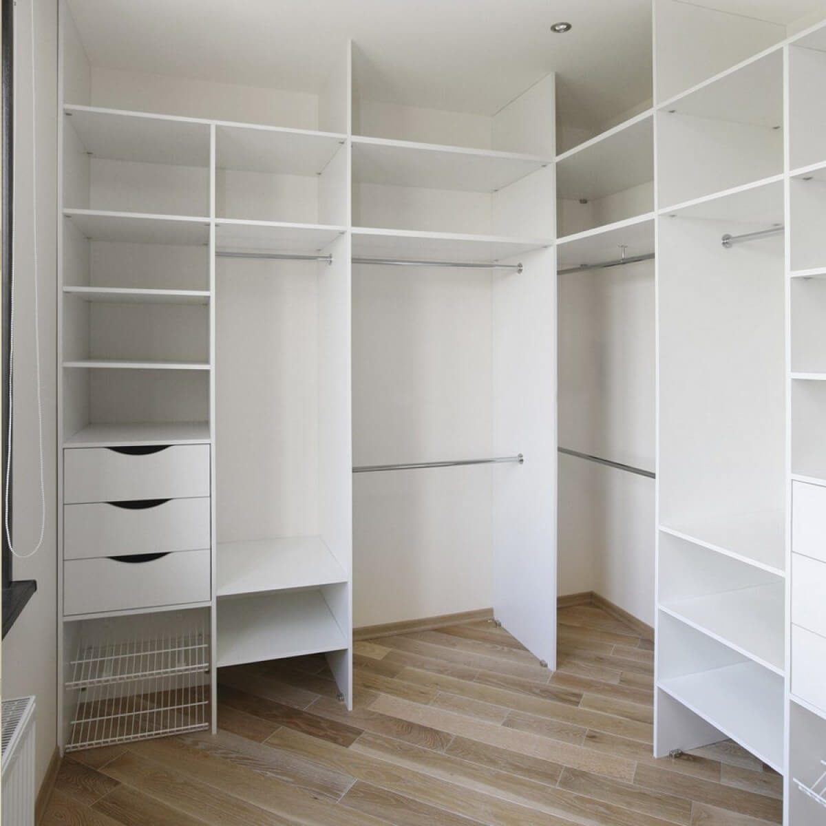 Крючки, вешалки, корзины и ящики, сетчатые полки, механизмы обувниц, пантографы и другие системы для удобства хранения личных вещей.