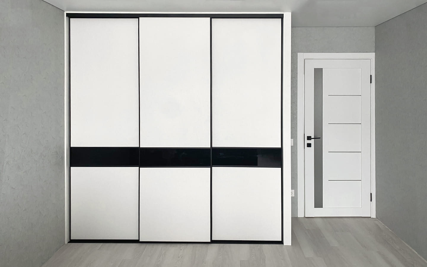 ЛДСП Lamarty «Белый», Тиснение D, 16 мм., Стекло прозрачное с пленкой Oracal 070 Black