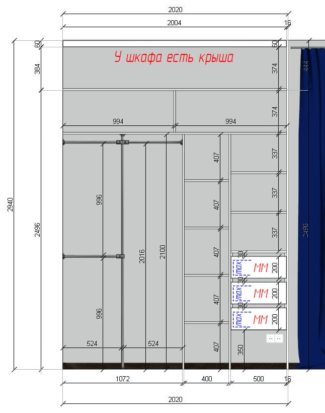 ✓ Укажите примерные размеры вашего помещения под шкаф;