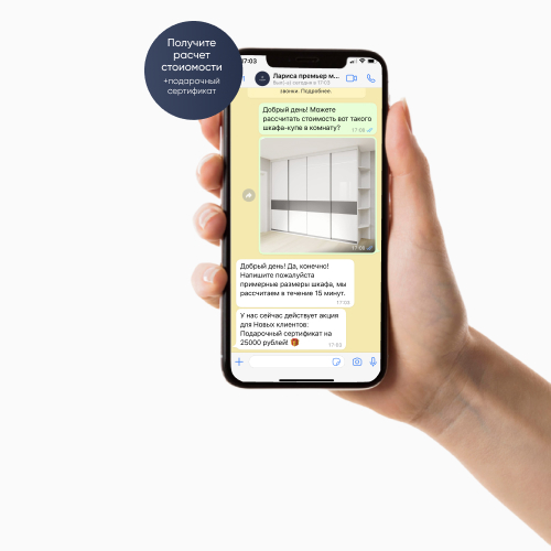 ✓ Сертификат на сумму 25 000₽ на покупку шкафа-купе;